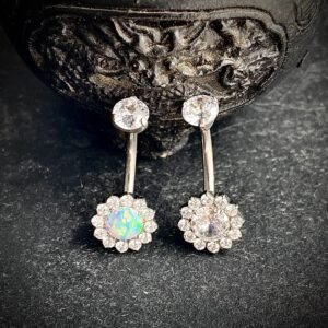 Product Details: 🔩 Type: Threaded Earring 📏 Size: 1.2 × 6 mm 🎨 Colors: Silver / Black 💎 Material: 316L Surgical Steel 🌊 Design: Triple Sparkling Opal